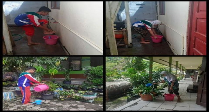 Nah, teman - teman mulai sekarang jangan buang air bekas berwudhu kalian, tapi tampung lah di dalam ember atau wadah air, setelah itu air nya bisa di manfaatkan. Seperti teman-teman kader Adiwiyata SDN MAwar 7 yang memanfaatkan limbah air wudhu untuk menyiram tanaman.